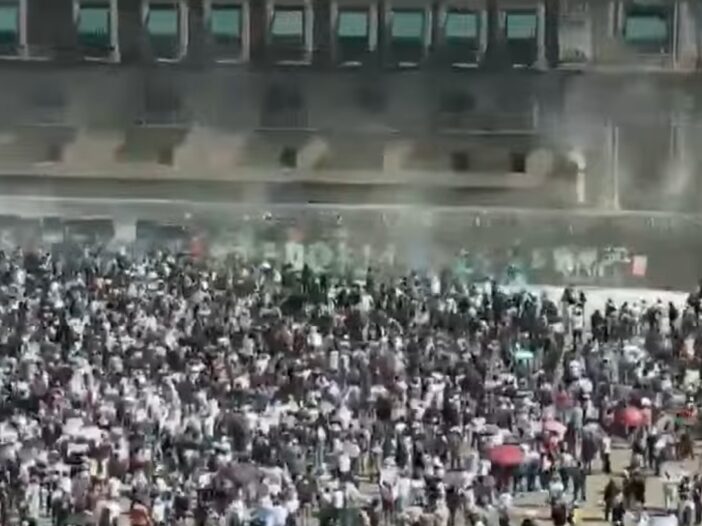 El uso de extintores —visible en varios videos difundidos en redes— generó mayor descontrol y obligó a los elementos a replegarse momentáneamente hacia el área interior de Palacio Nacional.