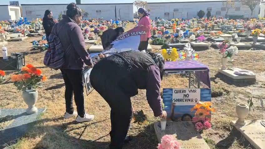 Ayer lunes, activistas y compañeras de lucha acudieron al panteón Jardines Eternos, en la colonia Satélite. Entre ellas estuvo Imelda Marrufo, de la Red Mesa de Mujeres.