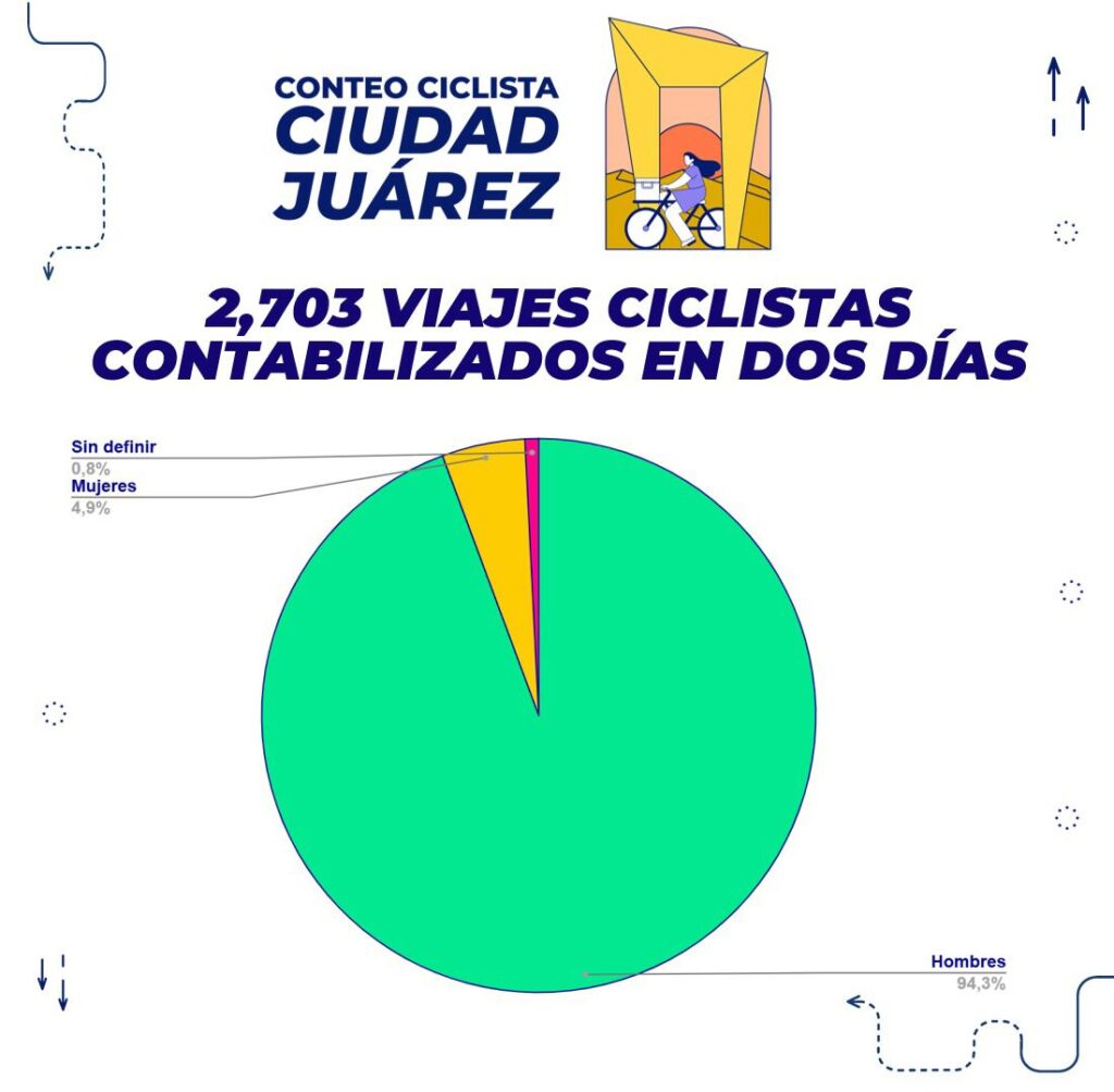 Los datos preliminares de este Conteo indican que el 94.3% de las personas que se movilizan en bicicleta son hombres, el 4.9 por ciento son mujeres y el 0.8% restante no se pudo definir, dio a conocer Amílcar Sáenz, uno de los voluntarios que participó.