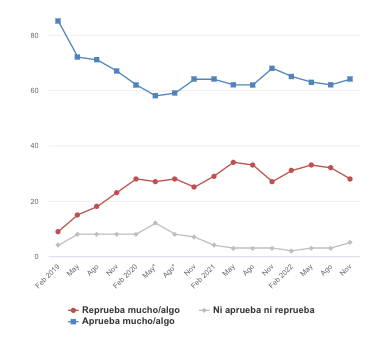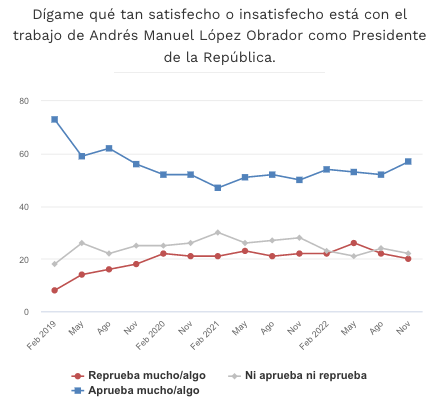 El sondeo se realizó del 17 al 22 de noviembre, es decir, entre cuatro y nueve días después de las marchas en defensa del INE que se dieron en varias ciudades del país. Así, uno de los principales aspectos a destacar es que la aprobación del Presidente no se deterioró, a pesar de las manifestaciones en contra de la iniciativa de reforma electoral que se discutirá los próximos días en la Cámara de Diputados.