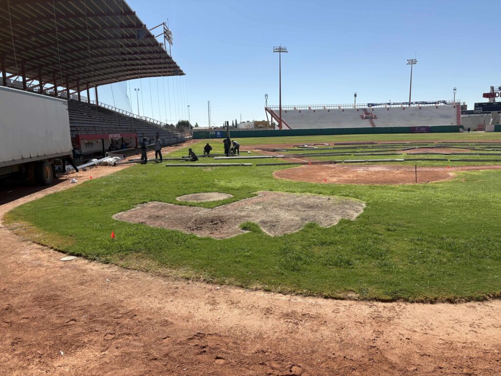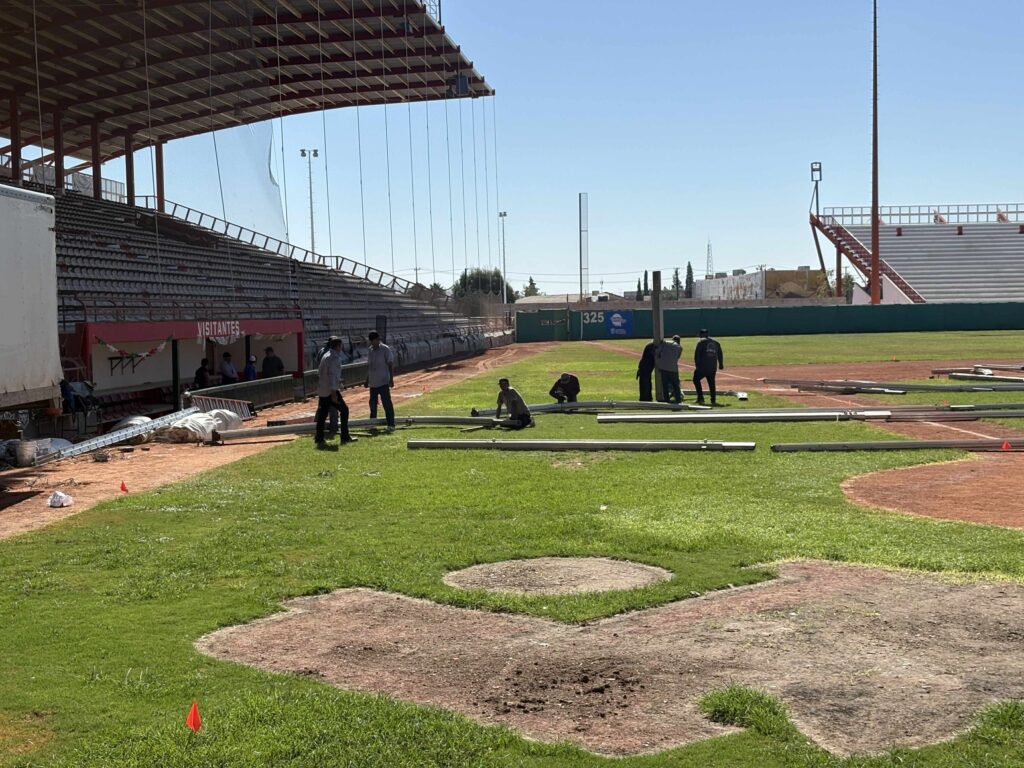 A unas 24 horas de que la presidenta de México, Claudia Sheinbaum Pardo, ingrese al terreno del Estadio Juárez, ya se observa a una veintena de trabajadores realizando labores para montar las estructuras de acero que se utilizarán para que emita su primer informe regional de Gobierno a los juarenses.