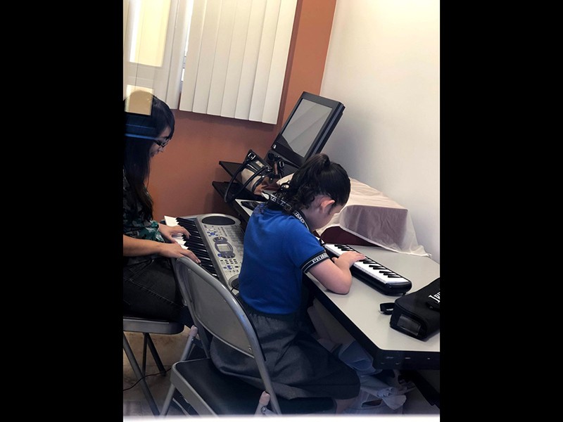 La alumna estudia en su casa, a distancia, con el apoyo de su maestra. No ha dejado de evolucionar no solo en el conocimiento formal, sino en el arte y los deportes, pese a su condición.