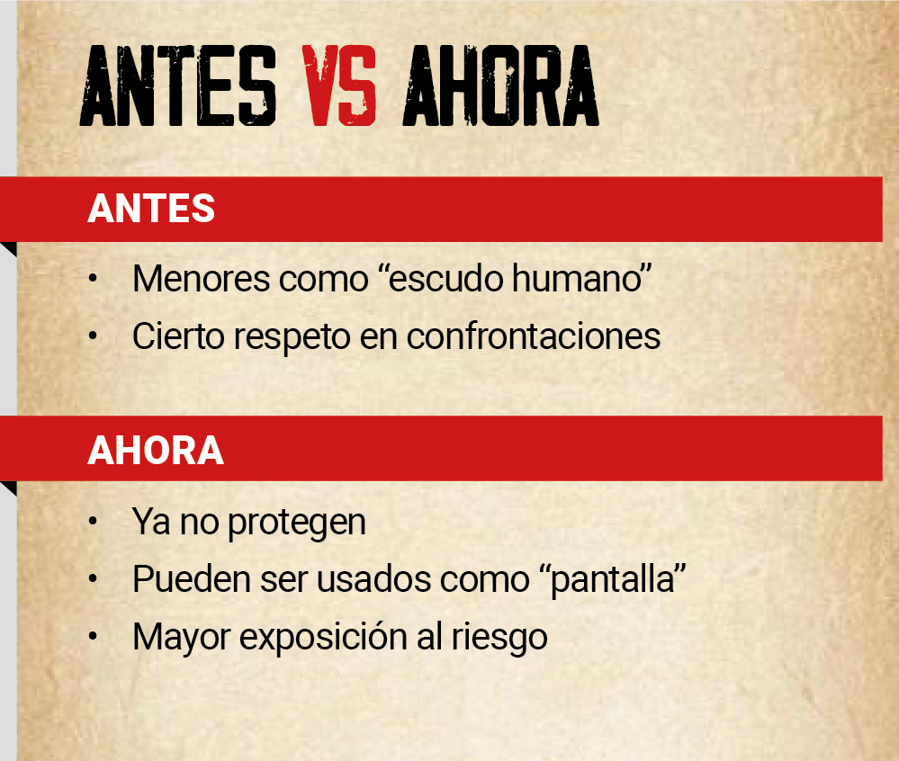 Reconoció que décadas atrás, quienes se dedicaban a actividades ilícitas utilizaban la presencia de menores como una especie de “escudo humano”, ya que los contrarios evitaban actuar si había un niño presente. Sin embargo, esa lógica ha cambiado y hoy la presencia de un menor no garantiza la integridad de los adultos.