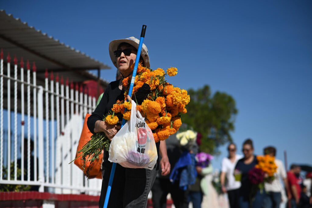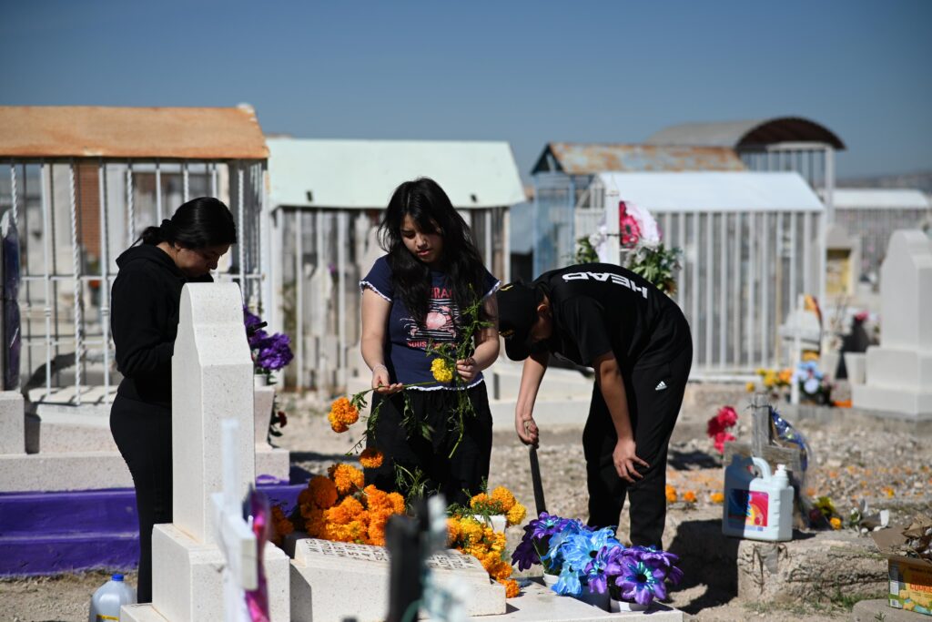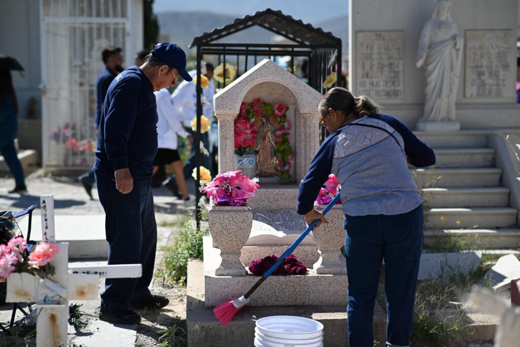 Algunos pocos son los que salen victoriosos con sus escobas, palas y picos en mano, quienes se dirigen a la salida tras haber acabado de adornar las tumbas de sus muertos, mientras tanto, en la entrada principal, cientos, quizás miles de juarenses, llegarán a este espacio para conmemorar a los que murieron físicamente, pero alma sigue viva.