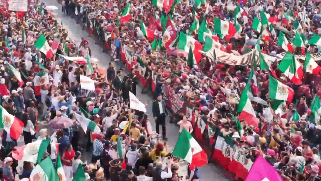 También externó un saludo especial a los jóvenes que marcharon para incorporarse al acto: “Que nadie se equivoque, que se oiga fuerte y lejos: las y los jóvenes están, en su gran mayoría, con la transformación de la vida pública de México”.