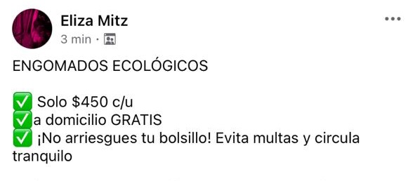 Abundan las publicaciones en diferentes grupos donde se comercializa el supuesto engomado, a propósito de la advertencia de autoridades municipales que han informado sobre su obligatoriedad para todos los vehículos que circulen por las calles.