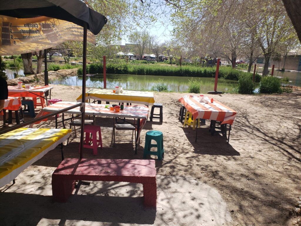 Incluso los locatarios colocan mesas y sillas en el mismo terreno donde está el agua encharcada, despidiendo olores fétidos todo el día.