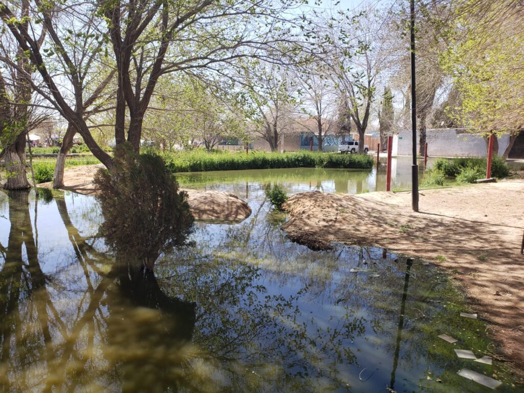 Vecinos denuncian riego de nogalera con aguas negras