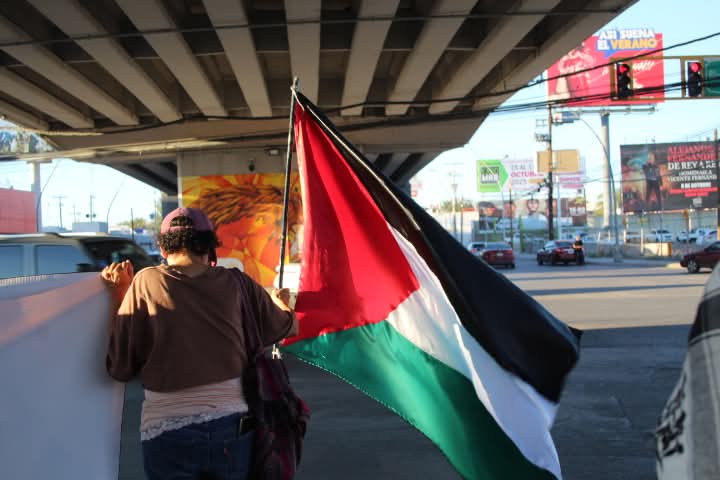 Señalaron que este tipo de protesta tiene el objetivo de hacer ver al Estado Mexicano el rechazo hacia la guerra que se disputa en Medio Oriente, así como exigir la liberación de los miembros de la flotilla Global Sumud.