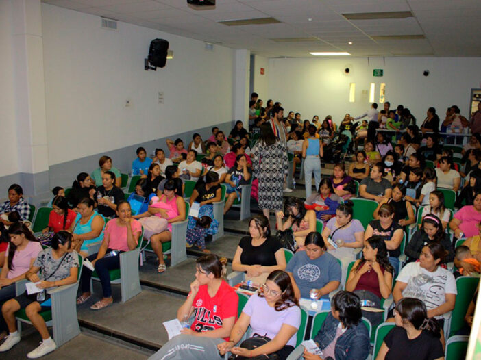 A las asistentes se les entregaron paquetes de bienvenida, cuyo contenido incluyen insumos básicos de higiene y pañales para el cuidado del recién nacido, así como material informativo sobre el cuidado materno-infantil.