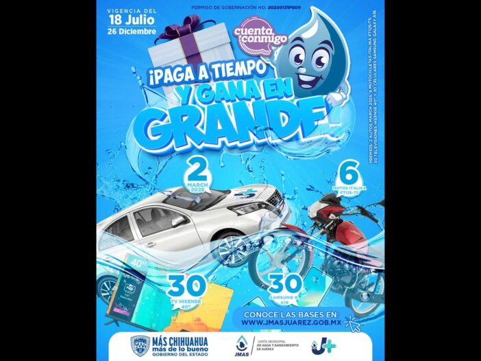 Para consultar las bases completas del sorteo, los interesados pueden ingresar a www.jmasjuarez.gob.mx.