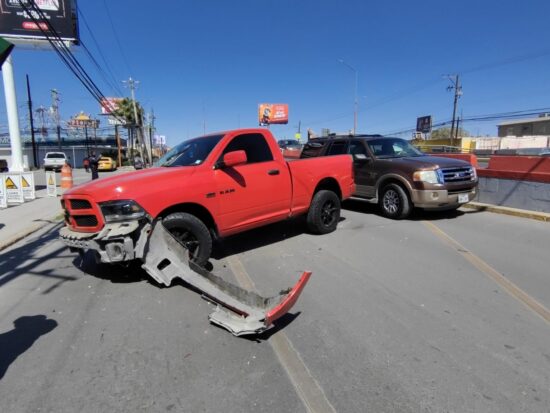 Camioneta cae del Puente al Revés tras choque en la avenida Tecnológico