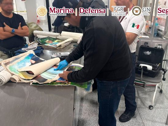 Detienen en el AICM a extranjero que transportaba lienzos con narcótico en la pintura