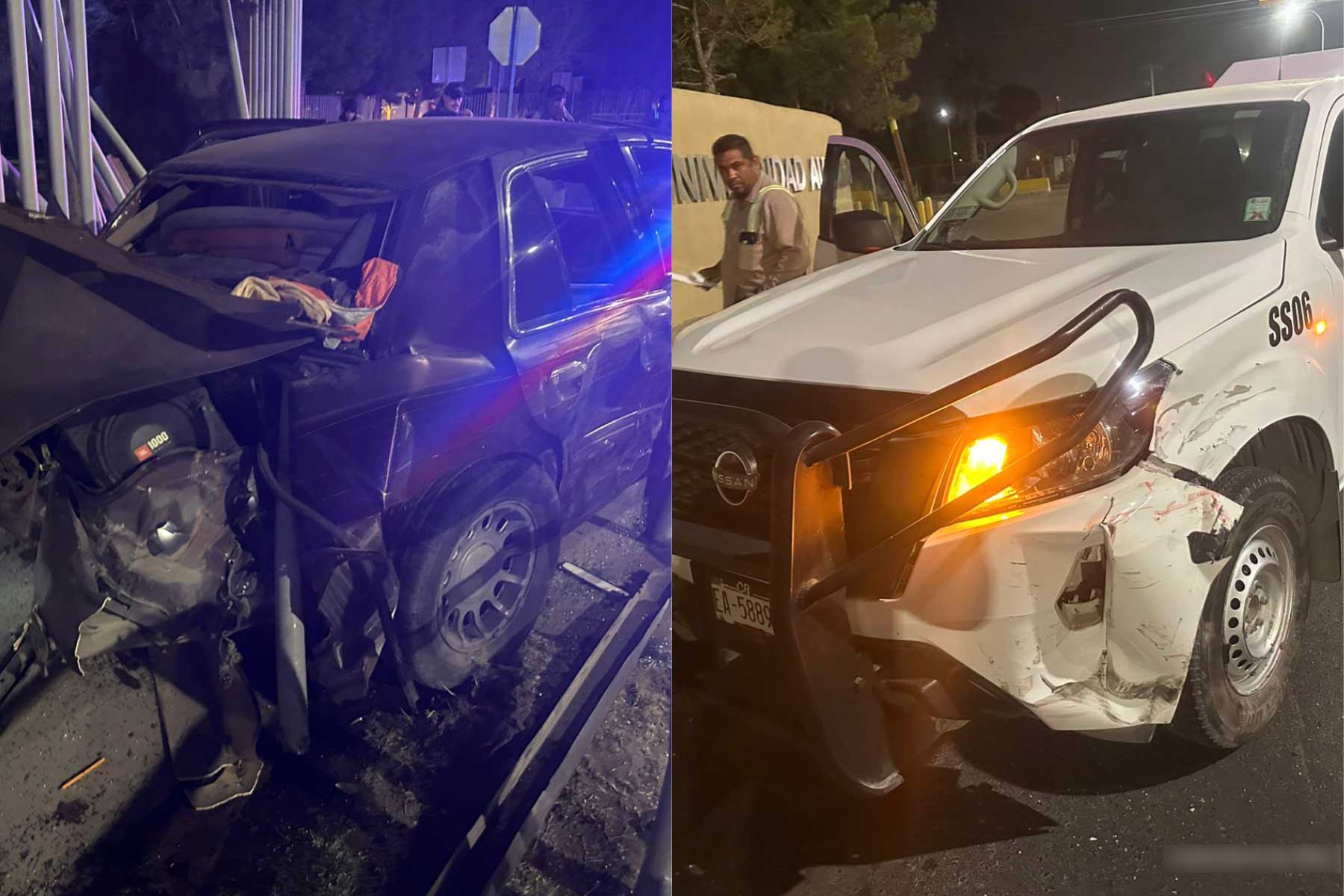 Conductor pierde el control de camioneta e impacta a un automóvil que termina incrustado en barda metálica de ICSA