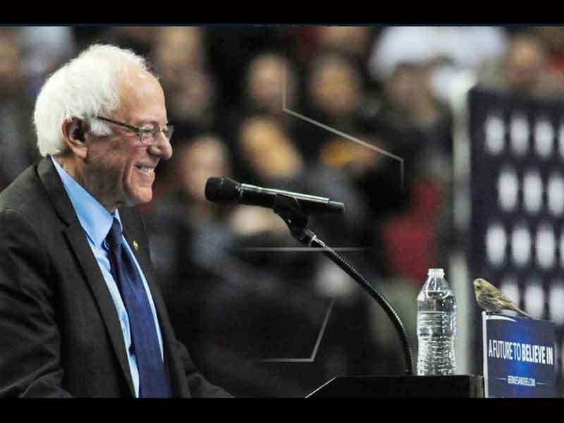 Una pequeña ave se robó el show el viernes durante un mitin de campaña de Bernie Sanders