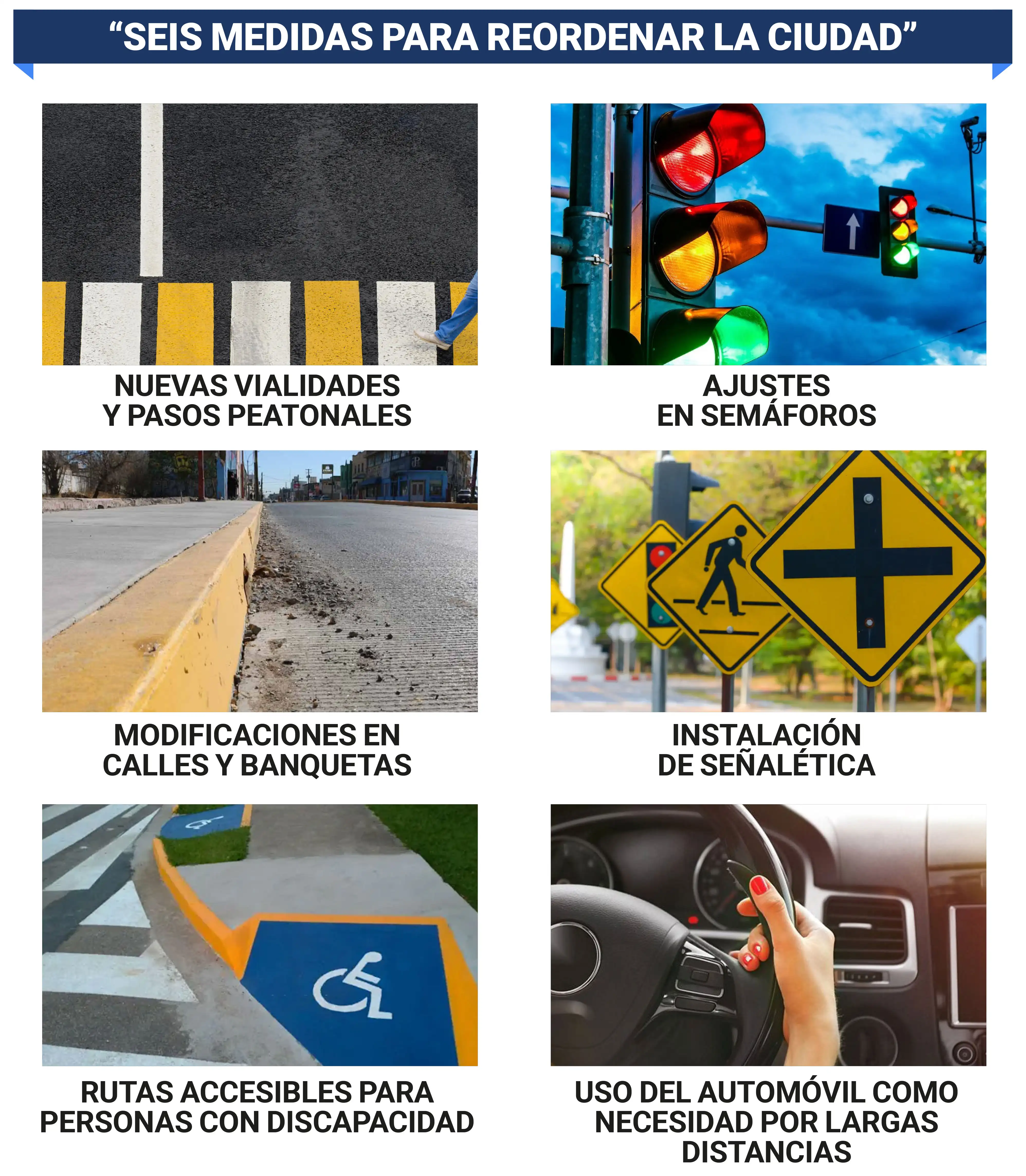 Mejía Chavira indica que la circulación en la ciudad es acorde a la infraestructura que se tiene. Si bien es cierto que en años anteriores no había tanta carga de tráfico, ahora se aplican planes, estrategias, modificaciones, pasos peatonales y nuevas vialidades para reconfigurar el flujo vehicular.