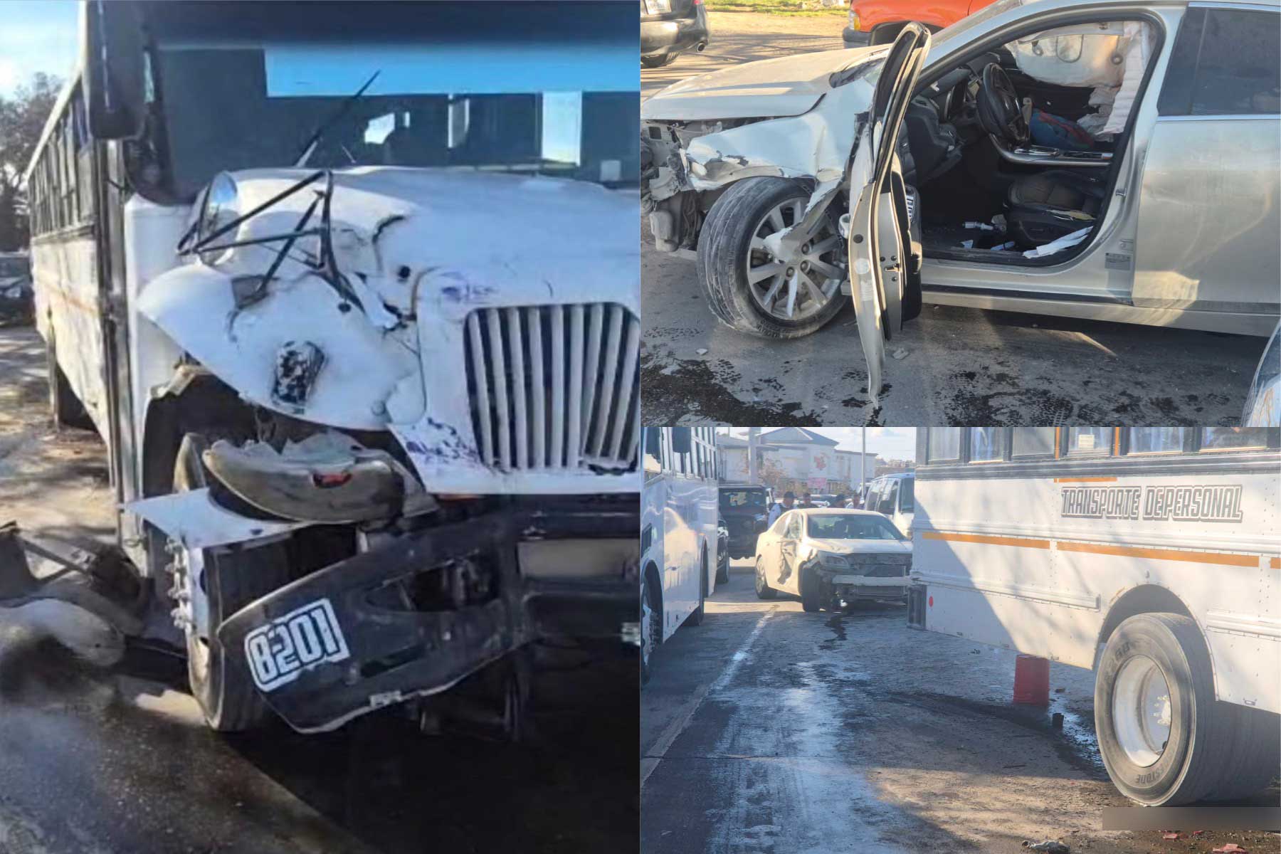 Tres camiones de transporte de personal, dos camionetas y un automóvil los participantes del encontronazo