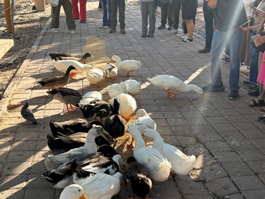 El recorrido finaliza con la experiencia de alimentar a los patos domésticos, con una mezcla balanceada de semillas, granos y croquetas especiales para aves.
