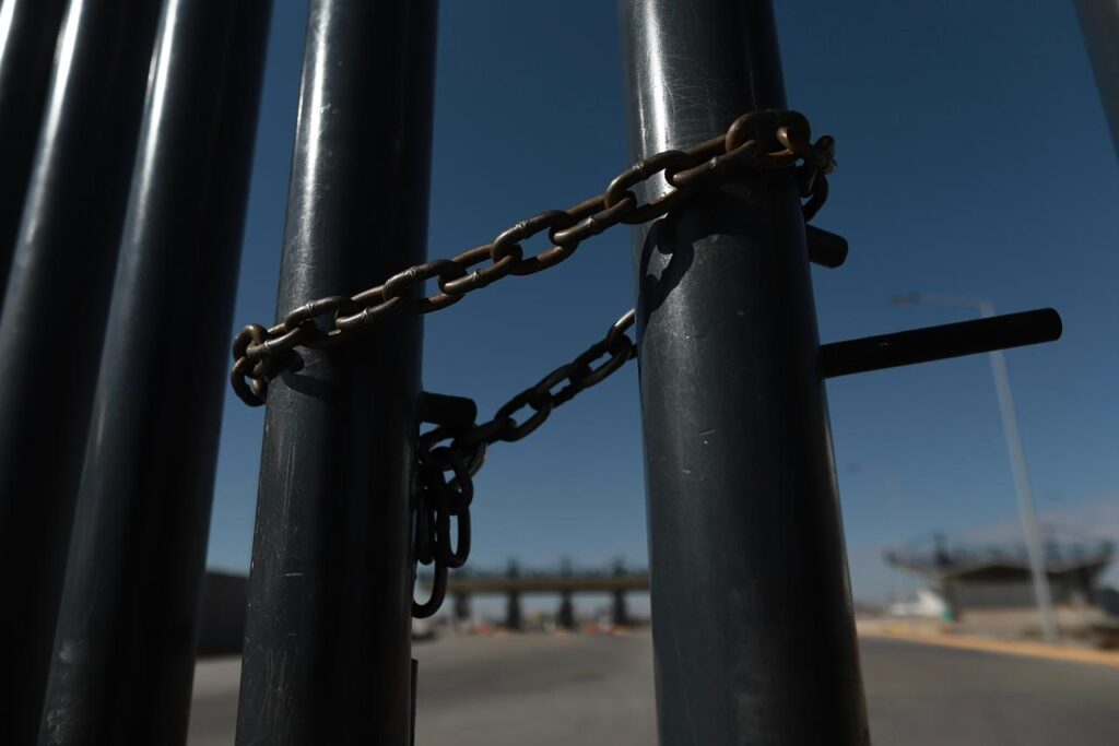 Otra imagen revela la reja metálica del recinto fiscal cerrada con cadena y candado, asegurada para impedir cualquier acceso a los carriles de revisión.
