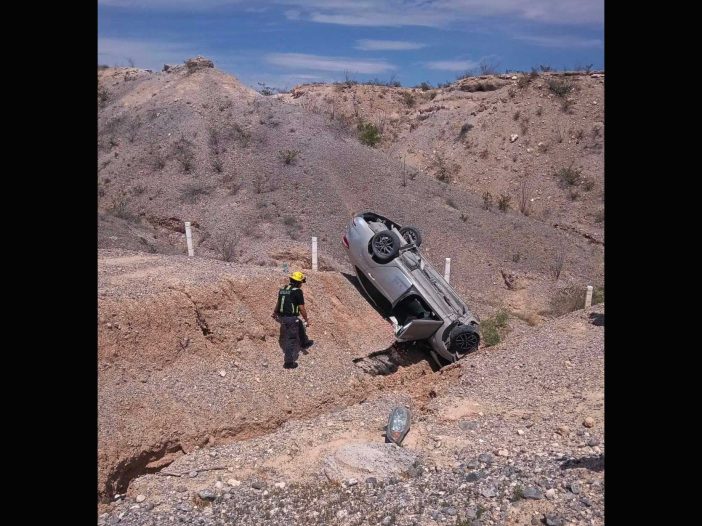 Una persona resultó lesionada luego de que el vehículo en el que viajaba se volcara en la carretera Libramiento Samalayuca – Juárez, a la altura del entronque Juárez – Tornillo.