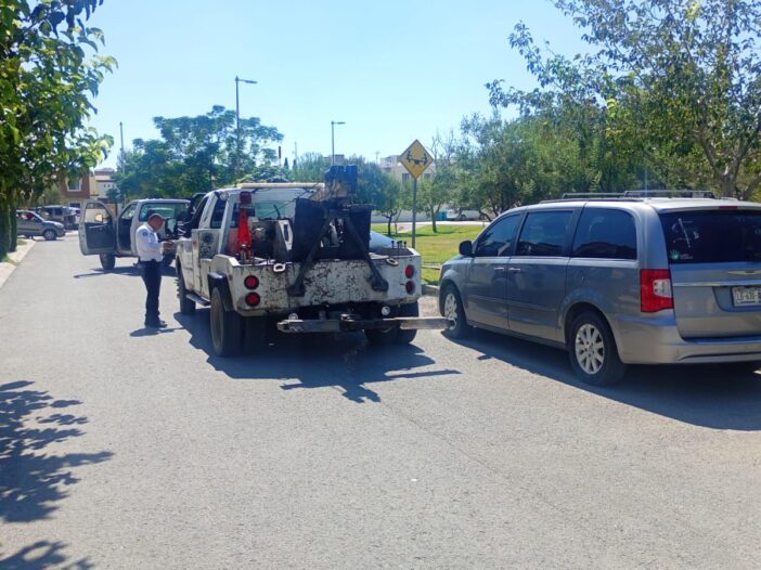 Personal de la corporación dio a conocer que, ante la notificación y posterior omisión de los dueños de automóviles que permanecían estacionados sin uso en el fraccionamiento Kastelo Residencial, se procedió a retirarlos.