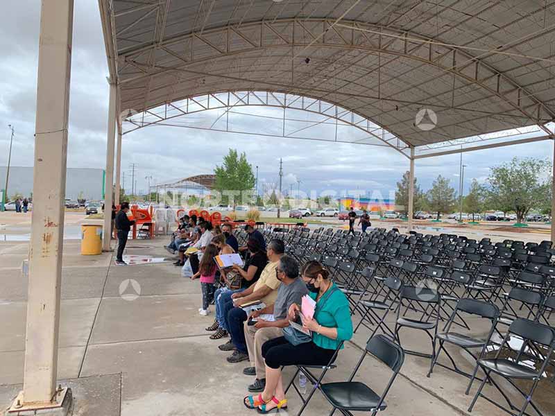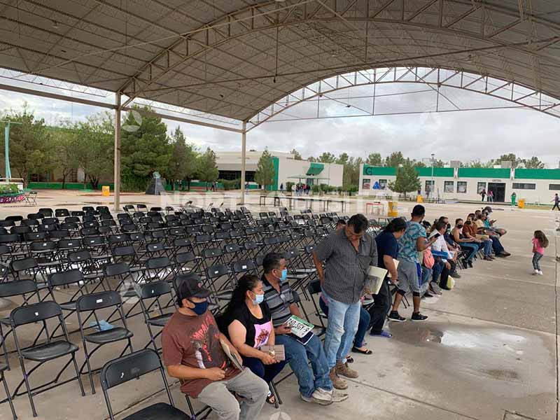 Norte Digital estuvo en el megamódulo de la Universidad Tecnológica de Ciudad Juárez, donde los contribuyentes esperaban sentados bajo el domo, a que los dejaran entrar a realizar el trámite.