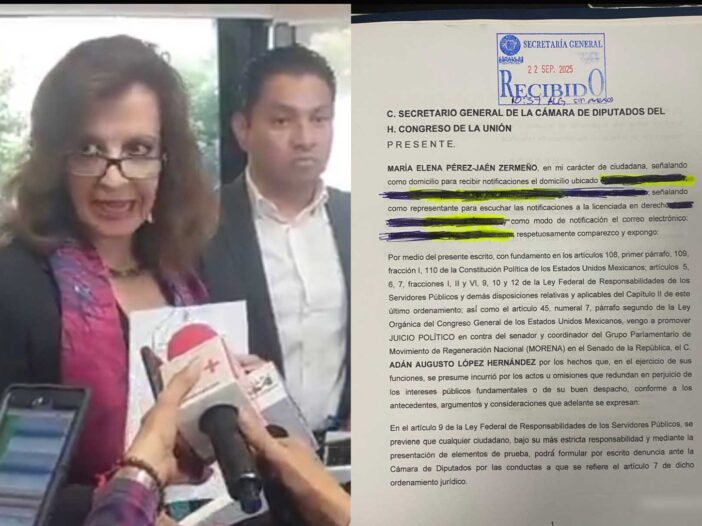 Ciudad de México – En un movimiento que ha avivado el debate sobre la impunidad en casos de presunta colusión con el crimen organizado, la exdiputada federal suplente por el PAN, María Elena Pérez-Jaén Zermeño, presentó hoy una solicitud de juicio político contra el senador y coordinador de Morena en el Senado, Adán Augusto López Hernández.