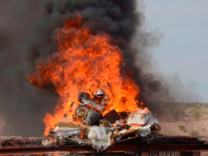 En Ciudad Juárez se realizó un evento de incineración donde se destruyeron más de 400 kilos de narcóticos, principalmente marihuana, cocaína y metanfetamina.