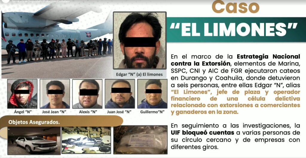 En rueda de prensa nacional, el secretario de Seguridad y Protección Ciudadana, Omar García Harfuch, presumió la captura de Edgar “N”, alias “El Limones”, presunto líder de una célula criminal de “Los Cabrera”, cuya operación se mantenía en los estados de Durango, Coahuila y Chihuahua.