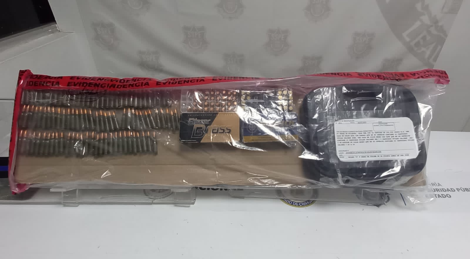 Además, en el vehículo se localizaron: 93 cartuchos útiles calibre 7.62×39, 14 cartuchos útiles calibre 9 mm, 41 cartuchos útiles calibre .40, 8 cartuchos útiles calibre .380 mm, una bolsa con lo que pareciera ser mariguana y 20 envoltorios, presumiblemente con cocaína.