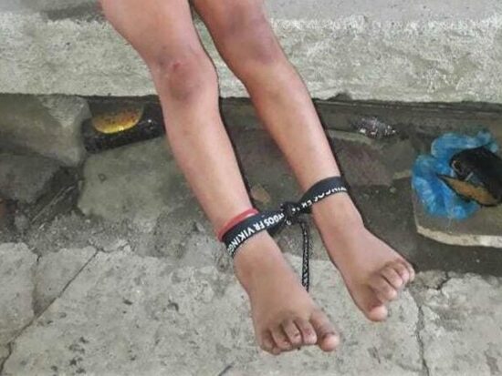 El castigo infame: amarraron a un niño descalzo a una piedra