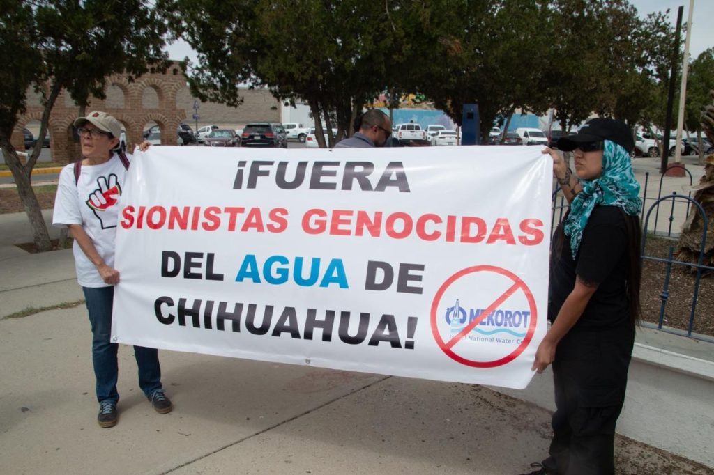 La mañana de este miércoles, un grupo de manifestantes de la Red Frontera Palestina acudió a las afueras de las oficinas centrales de la Junta Municipal de Agua y Saneamiento, con el propósito de manifestar su inconformidad porque la empresa descentralizada tiene posibles nexos con la empresa israelí Mekorot.
