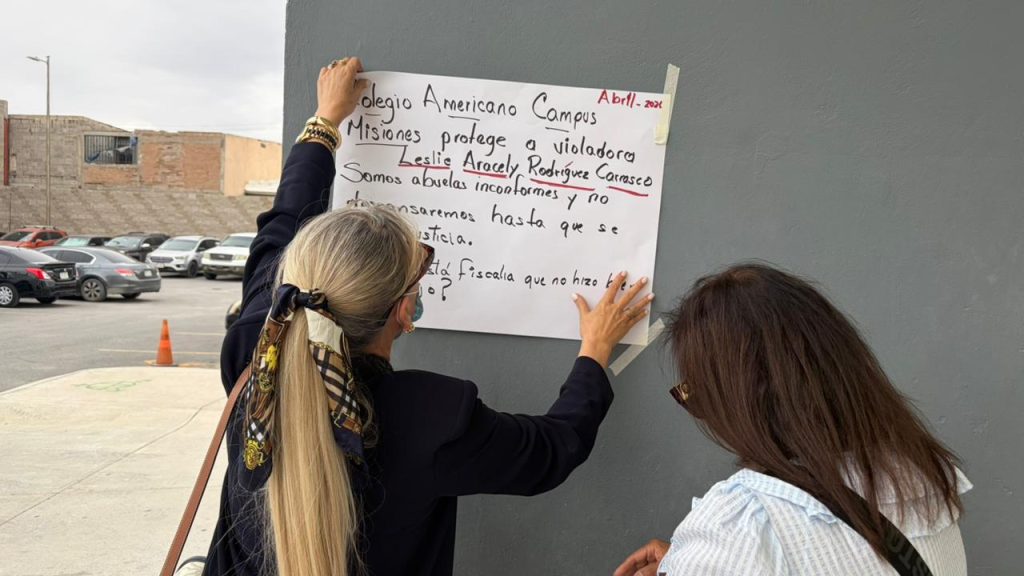 Abuelas de niña víctima de violación al parecer en las instalaciones del Colegio Americano, protestan afuera de Fiscalía de la Mujer (FEM) ante decisión de juzgadora para omitir vincular a proceso a presunta agresora.