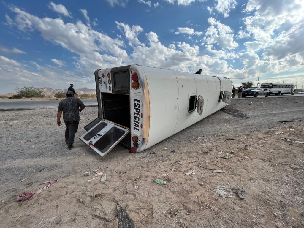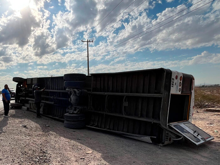 Esta mañana se registró la volcadura de una unidad de transporte de personal en la carretera a Casas Grandes, sin que se reportaran lesionados.