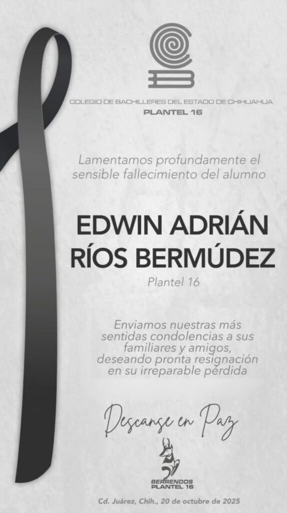 Tenía solo 17 años y muchas ganas de salir adelante. Se llamaba Edwin Adrián Ríos Bermúdez. Estudiaba en el Colegio de Bachilleres Plantel 16, en Ciudad Juárez, y como muchos jóvenes juarenses, combinaba los estudios con el trabajo para apoyar en casa.