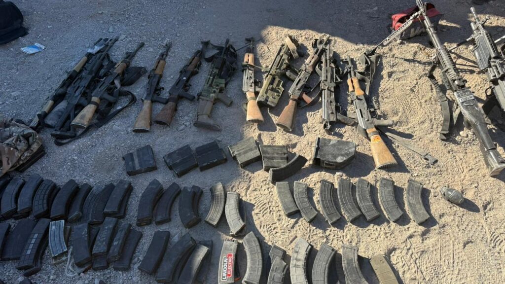El aseguramiento incluyó 11 armas largas, dos ametralladoras, dos fusiles Barrett, artefactos explosivos, tres vehículos y un dron, evidencia del poder de fuego que operaba en esta zona limítrofe con Texas.