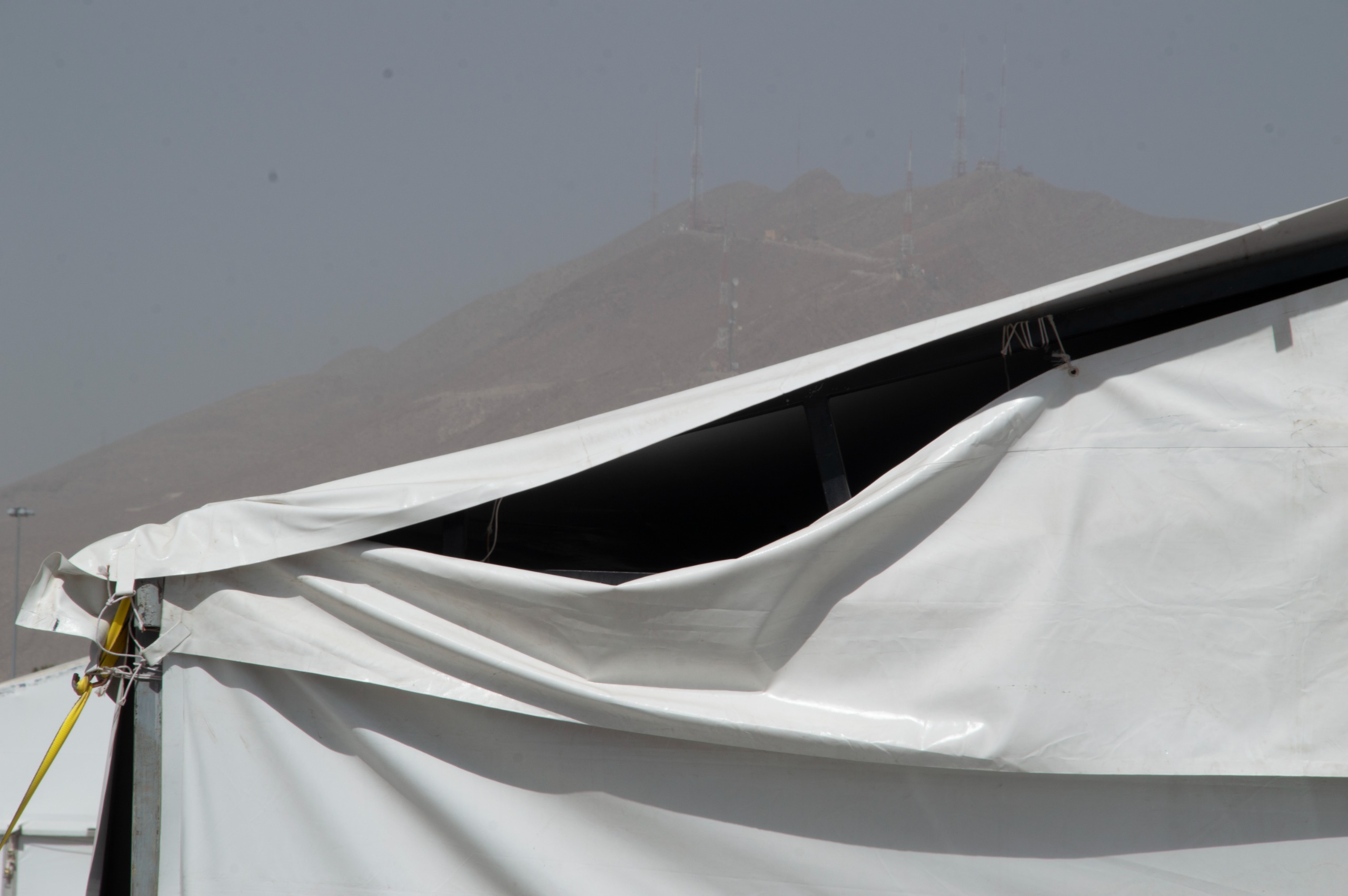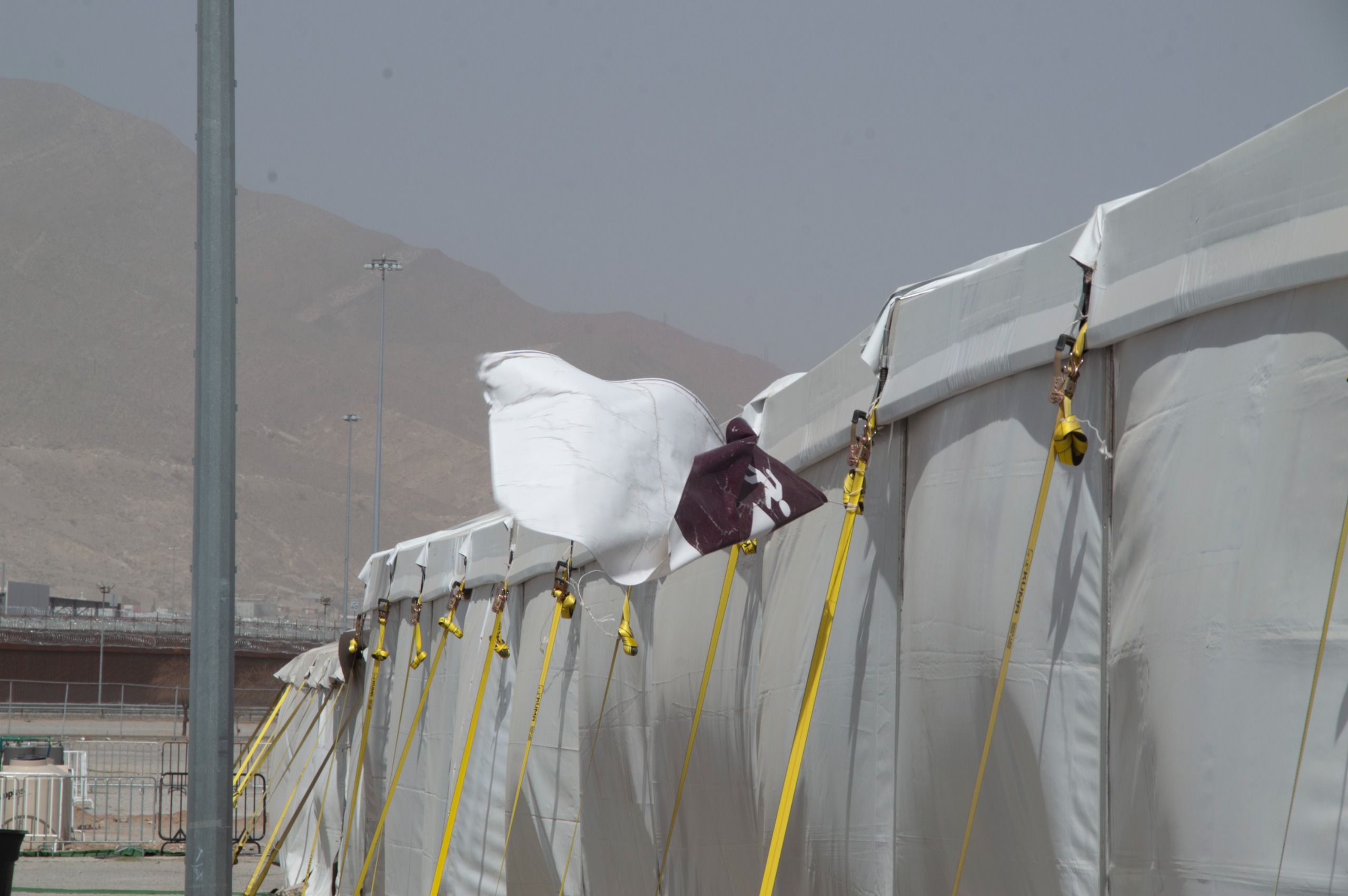 Si bien, se observaron algunas afectaciones en las lonas exteriores de las carpas, así como en los carteles que se encuentran en el lugar, consideró que no hay ningún riesgo estructural.