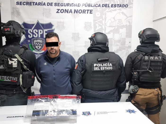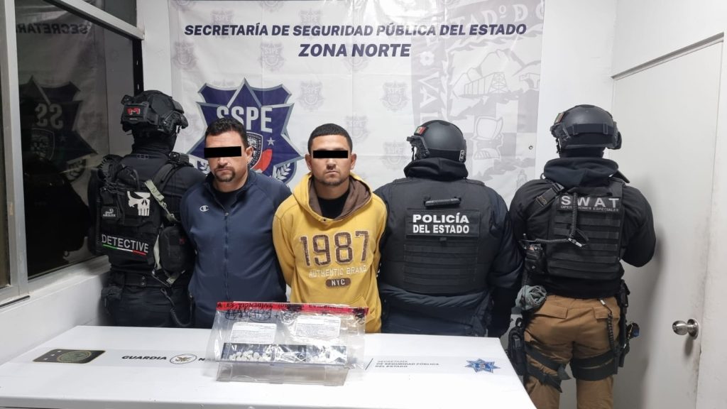 El personal de la SSPE también detuvo a Diego Alberto M. V. de 24 años de edad a quien localizaron entre sus pertenencias, un total de 7 envoltorios de plástico con una sustancia granulosa y transparente con las características del “cristal”.