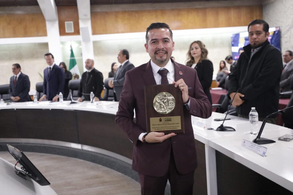 El Ayuntamiento juarense otorgó este lunes la Presea Fray García de San Francisco al Instituto Tecnológico de Ciudad Juárez (ITCJ), durante una sesión solemne de Cabildo.