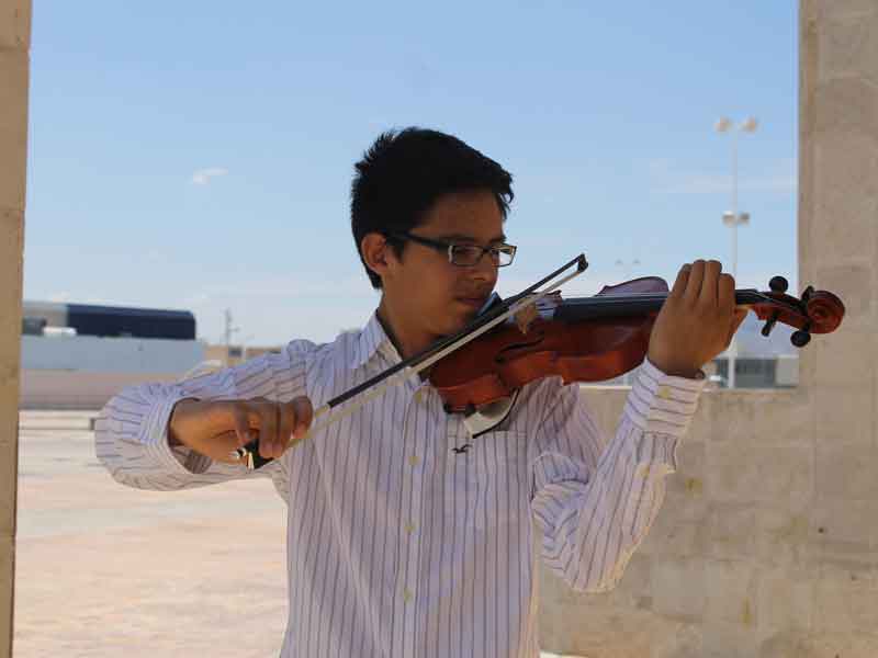 Con 15 años, el juarense Javier García ha tocado su violín junto a Plácido Domingo y Bill Clinton, y ha sido dirigido por Alondra de la Parra