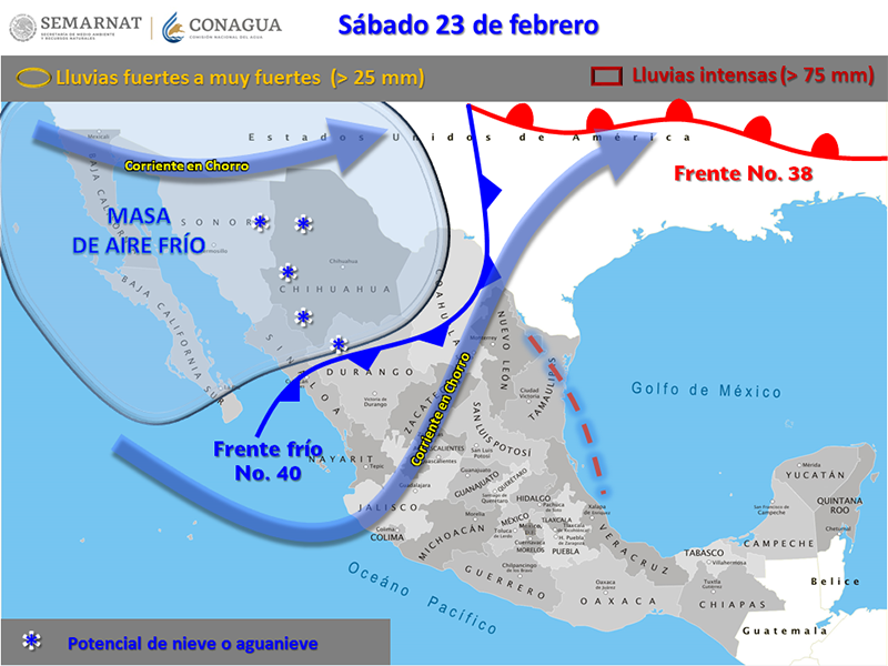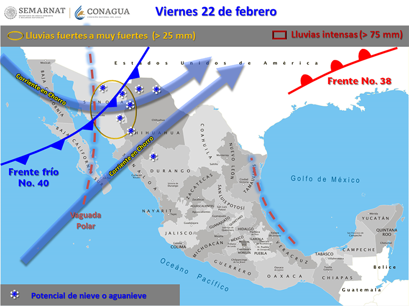 Con la llegada del frente frío Número 40 al noroeste del país traerá de nueva cuenta la posibilidad de la caída de nieve o aguanieve para el próximo viernes y parte del sábado, informó el Servicio Meteorológico Nacional.