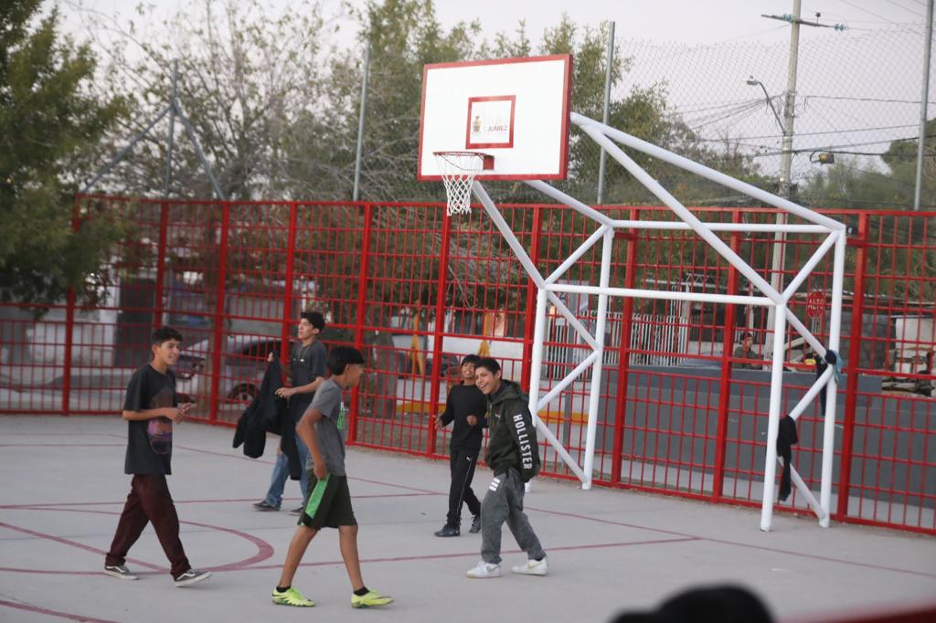 Los trabajos realizados en el parque fueron, reparación y pintura de juegos y mobiliario, retiro de grafitti, llantas, basura, instalación de infraestructura completa para instalar 16 luminarias led, pintura en gradas, rejas y canchas, así como la colocación de resbaladeros.