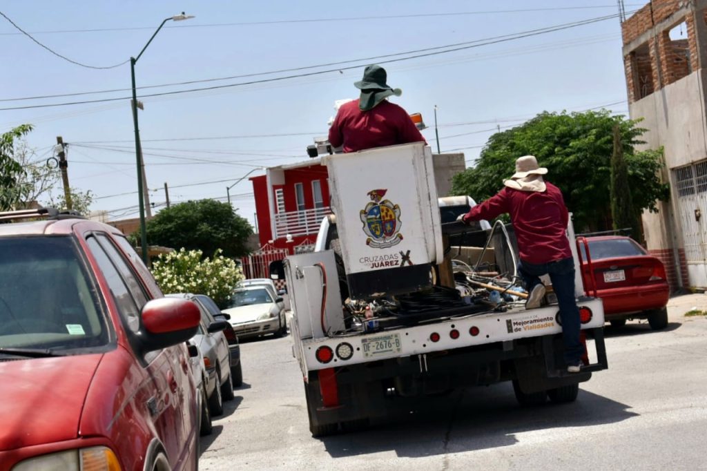 En el área permanecen también las cuadrillas de Limpia y de Parques y Jardines, quienes trabajan en la colonia Americano y el punto sede de lo que será la próxima Cruzada por Juárez, en donde se hace la limpieza general, se pintan las paredes donde hay grafitti, además de arreglar y pintar los juegos, las bancas y reja de la cancha en uno de los parques de la zona.