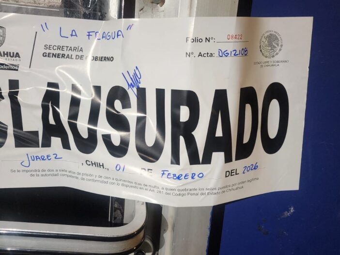 Dichas revisiones dieron como resultado 6 clausuras a establecimientos, de los cuales una fue en Chihuahua, una en Aldama y cuatro en Juárez.