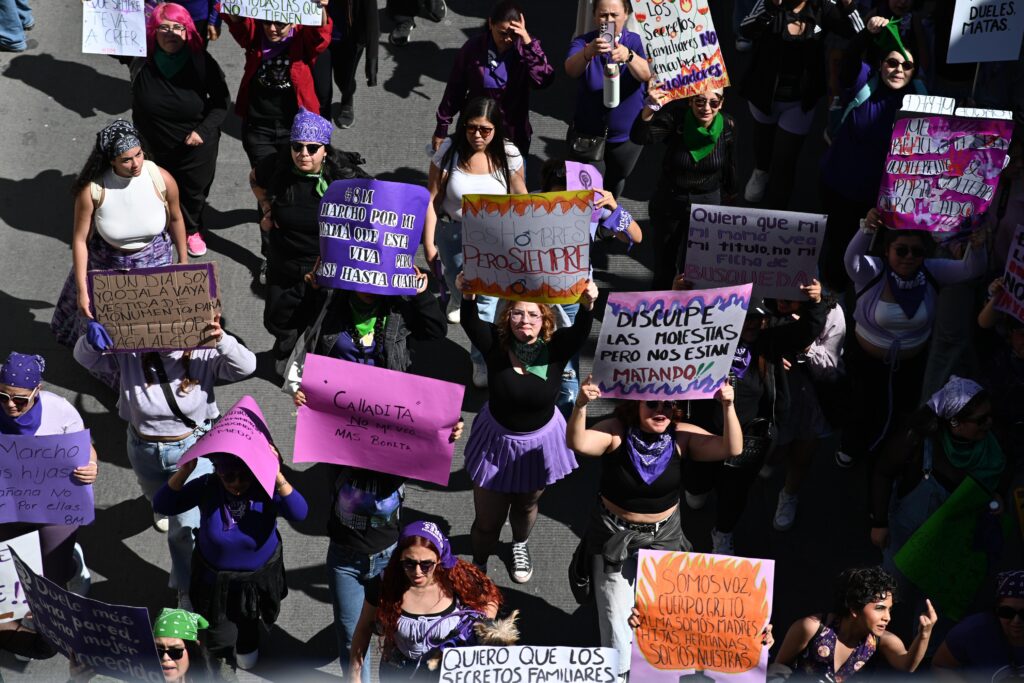 Avenida Universidad se tiñe de púrpura en marcha del 8M