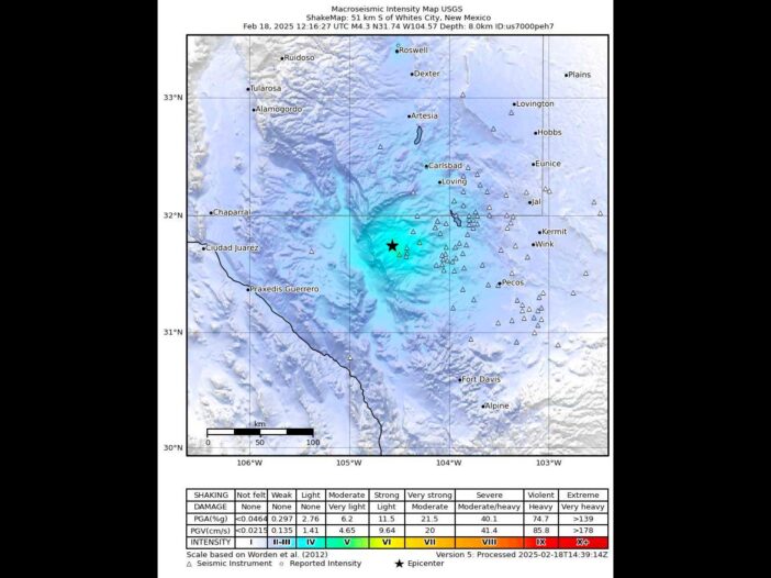 Durante esta mañana, la Dirección General de Protección Civil dio a conocer el reporte de que la ciudad fue afectada por un sismo de 4.6 grados Richter que tuvo su epicentro a 56 kilómetros al sur del poblado de Whites City, Nuevo México, ubicado a 192 kilómetros de esta ciudad.