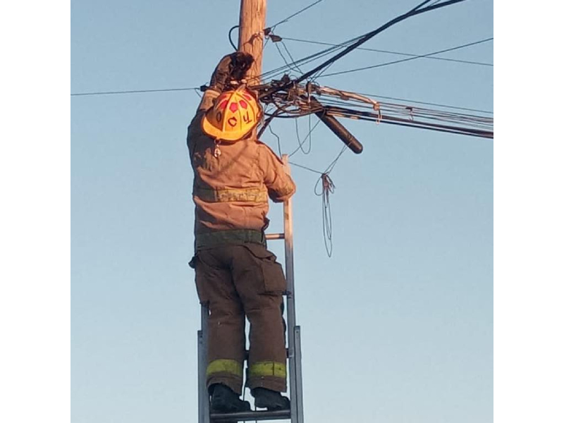 La mascota se quedó atorada entre la telaraña de cables que pendían del poste, aproximadamente a ocho metros de altura.
