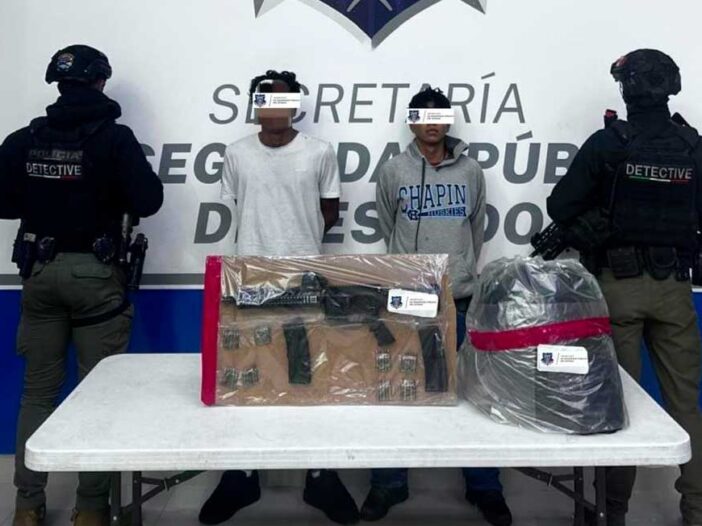 Durante la intervención, un dron de vigilancia detectó a dos personas sobre el techo de la vivienda que intentaban escapar, por lo que fueron aseguradas de inmediato. Se trata de Antonio “N”, de 19 años, y un menor de 17 años, presuntos integrantes de un grupo delictivo.