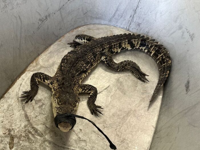 El cocodrilo, que tiene apenas unos meses de edad, mide aproximadamente 80 centímetros y se encuentra en buenas condiciones