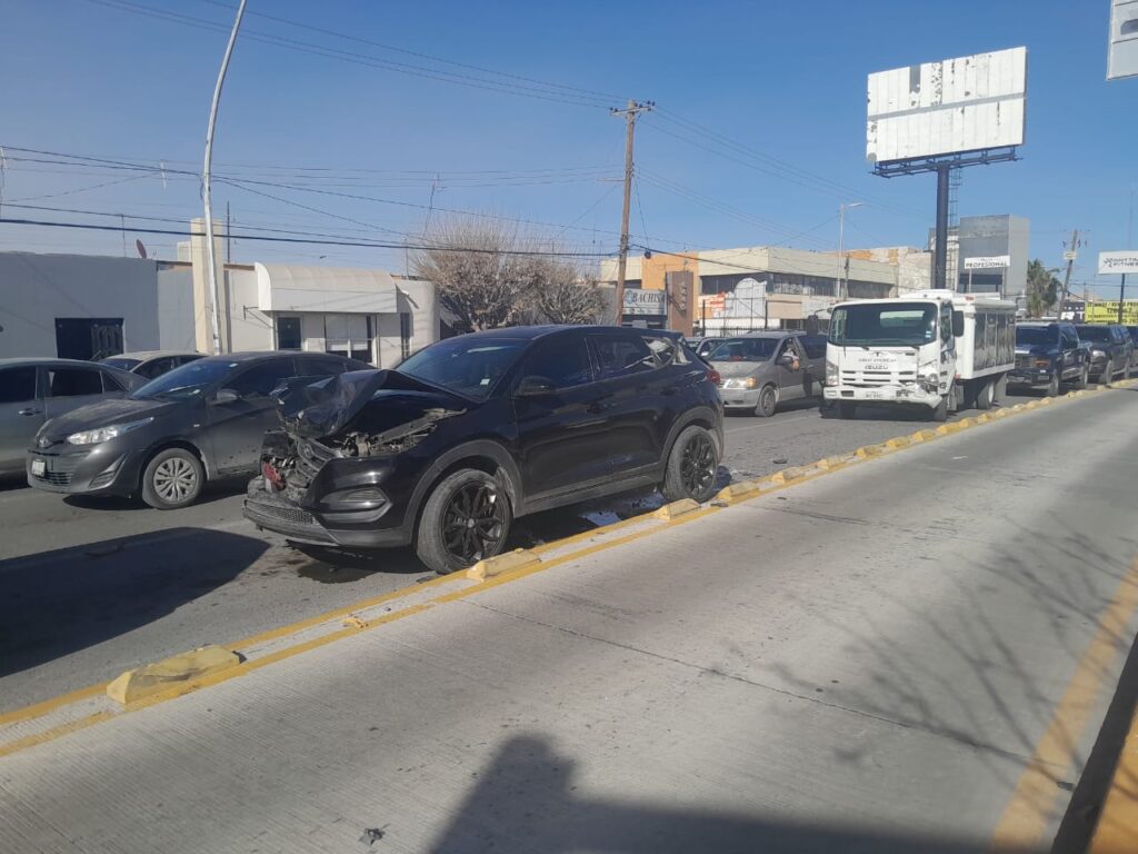 Peritos de Vialidad indicaron que una Toyota RAV4 blanca que esperaba en el semáforo para hacer el retorno, fue impactada por una GMC Denali negra, que a su vez fue golpeada por una Hyundai Tucson negra, que terminó siendo empujada por un camión de carga marca Isuzu.